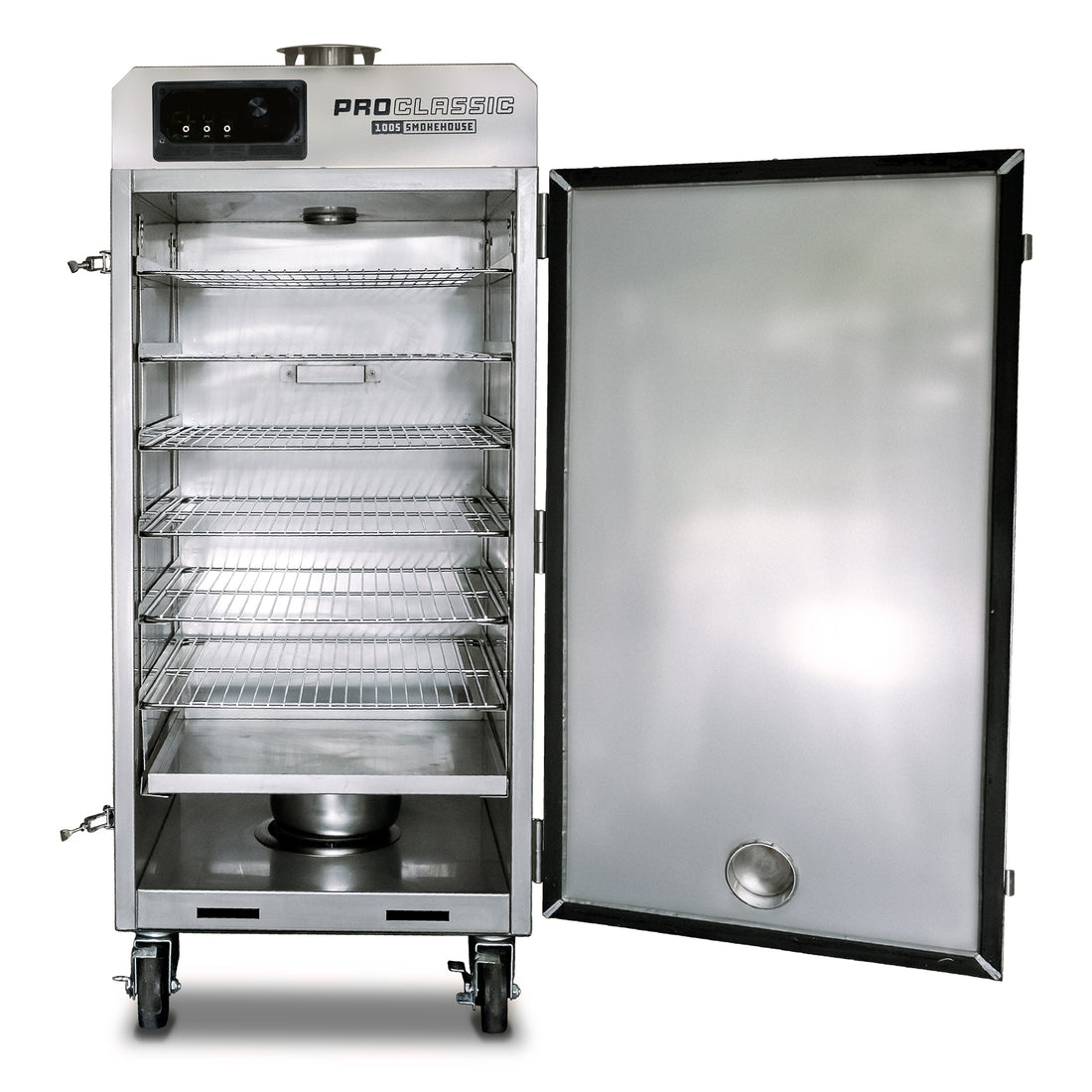 The all-new Pro Classic 100 is the next generation of smokers from Pro Smoker. This vertical electric smokehouse features the same commercial-grade technology and materials the pros use with capacity for up to 100 lbs of meat and sausage.