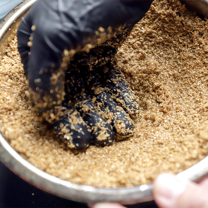 - Moisten the sawdust and funnel the sawdust to the outside of the pan (about 6 cups sawdust and 4 cups water).