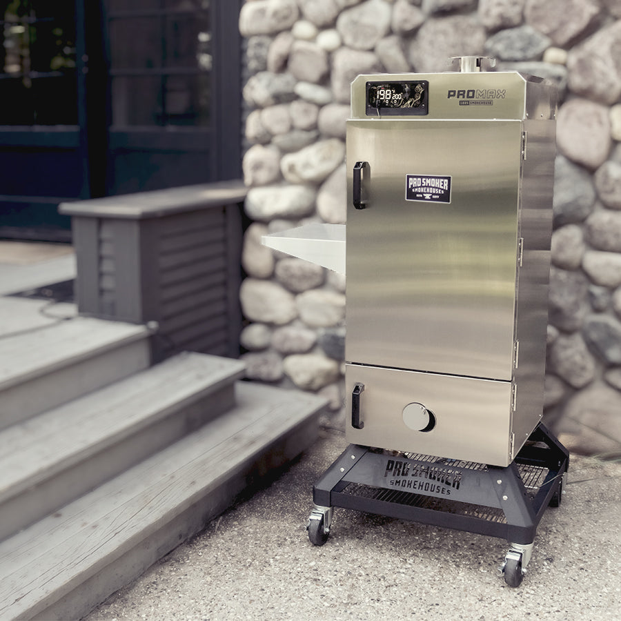 The included heavy duty caster base raises the smoker to make handling product easier than ever before. With added storage and Pro Smoker laser cut out, this heavy-duty base will make moving your smoker a breeze.